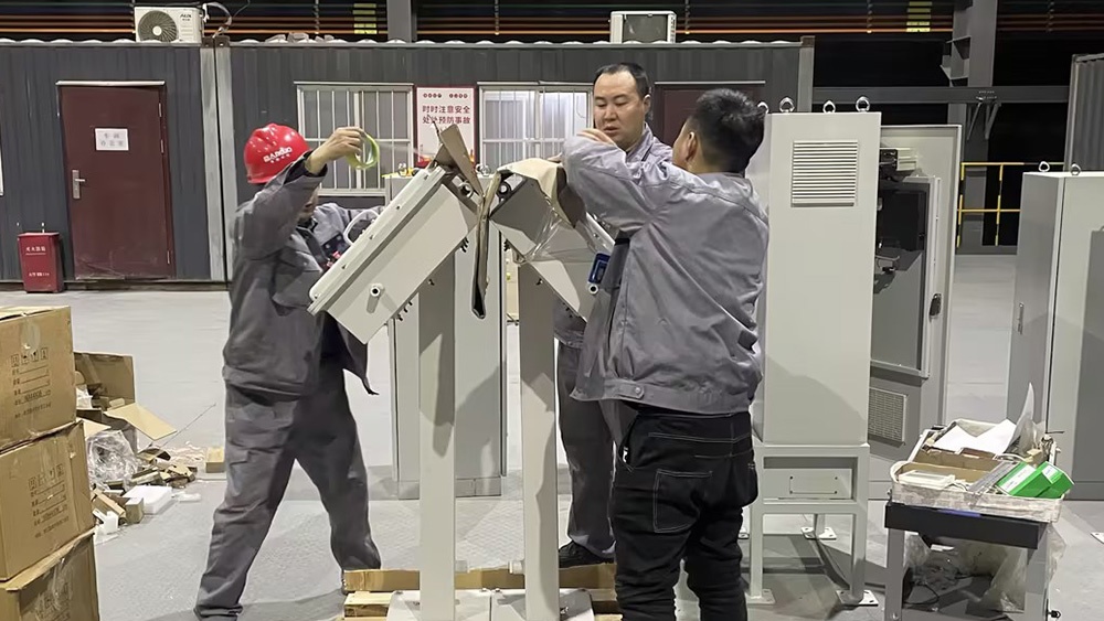 值得一提的是,此次任務(wù)部門上下一心,把工作做到了前面。電工班接到任務(wù)立即準(zhǔn)備電柜圖紙,提前領(lǐng)取所需配件,確保了生產(chǎn)的連續(xù)性,下午四點半,產(chǎn)品柜體到廠后立即投入工作。運輸方面,由于柜體高度和重量超出運輸標(biāo)準(zhǔn),安排文員提前溝通了多家公司,從航空到陸運多次被拒絕,又反復(fù)確定新方案,23日下午最終確定發(fā)貨時間與打包要求。晚上20點10分,柜體通電測試一次性成功后,做好防護快速發(fā)車,終于在物流發(fā)車的前5分鐘成功到達(dá)。